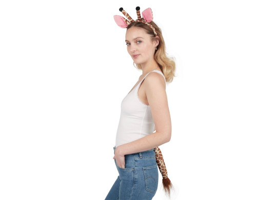 Set girafe comprenant un serre-tête et une queue. Idéal pour compléter un déguisement ou une tenue festive.
