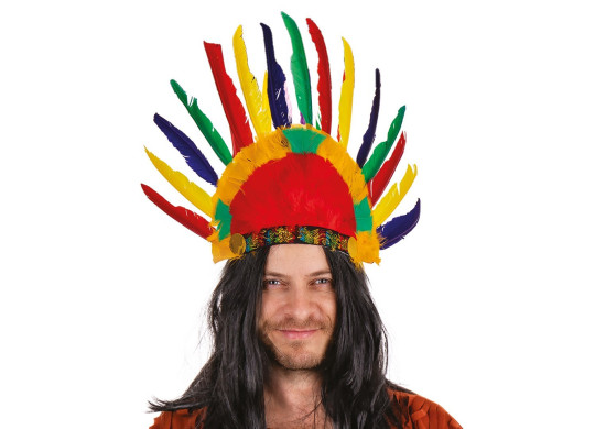 Coiffe d’indien plume multicolore idéale pour compléter un déguisement tribal ou amérindien.