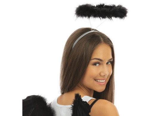 Serre-tête halo d’ange noir, parfait pour compléter un déguisement angélique ou un look féerique.