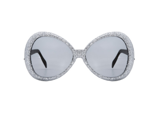 Lunettes mouches argentées à paillettes, parfaites pour ajouter une touche originale et brillante à un déguisement ou un look festif.