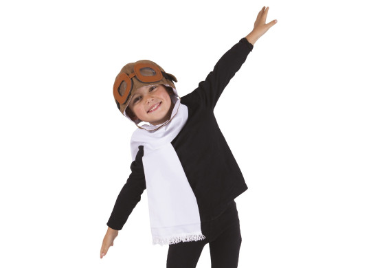 Set enfant aviateur comprenant plusieurs accessoires assortis. Idéal pour compléter un déguisement ou une tenue à thème.