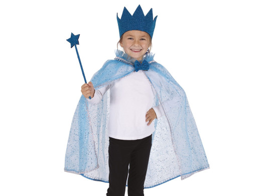 Set enfant princesse bleue comprenant plusieurs accessoires assortis. Idéal pour compléter un déguisement ou une tenue à thème.