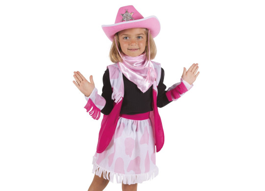 Set enfant cowgirl comprenant plusieurs accessoires assortis. Idéal pour compléter un déguisement ou une tenue à thème.