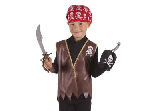 Set enfant pirate comprenant plusieurs accessoires assortis. Idéal pour compléter un déguisement ou une tenue à thème.