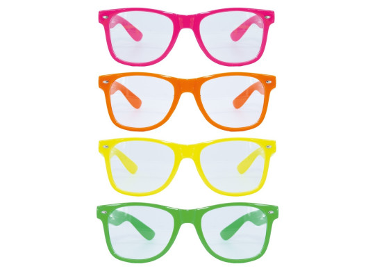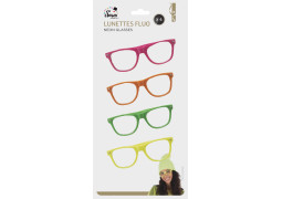 Lot de 4 lunettes fluo, parfaites pour soirées et événements festifs.