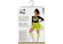 > Voir la description complèteSet de déguisement adulte style années 80 comprenant : t-shirt, collier, boucles d’oreilles, serre-tête, tutu, guêtres et gants en couleur jaune. Idéal pour soirées à thème, carnaval, fêtes déguisées ou événements rétro. Apporte une touche fun, colorée et dynamique à votre tenue.
