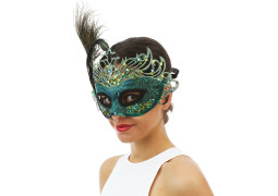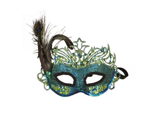Lou à sequins style paon, demi‑masque festif pour compléter un déguisement ou une tenue élégante.