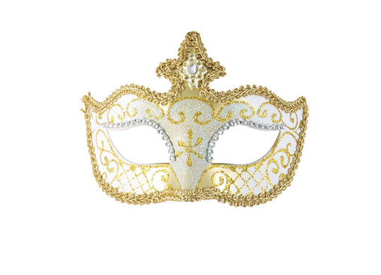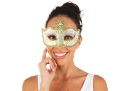 > Voir la description complèteLou en plastiqueivoire et or, léger et confortable à porter. Ce demi‑masque couvre la partie supérieure du visage et est parfait pour soirées costumées, carnavals, bals masqués ou fêtes à thème. Apporte une touche élégante et raffinée à votre tenue tout en restant facile à porter et durable.
