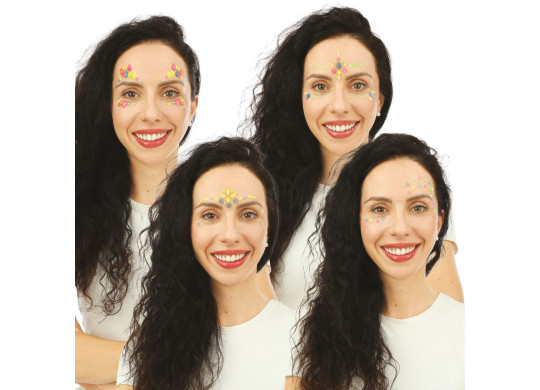 Strass autocollants UV pour le visage, parfaits pour compléter un maquillage festif ou un look lumineux.