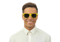 Lunettes en plastique style “Rayban”, coloris jaune, parfaites pour compléter un look fun et festif.