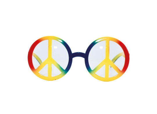 Lunettes Peace and Love multicolores, parfaites pour compléter un look rétro et festif.