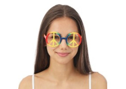 > Voir la description complèteLunettes style Peace and Love, multicolores, légères et faciles à porter. Idéales pour soirées à thème années 60/70, festivals, anniversaires ou fêtes costumées, elles apportent une touche colorée, originale et ludique à votre tenue. Accessoire parfait pour compléter un déguisement hippie ou un look rétro amusant.