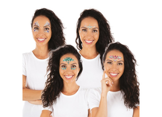 > Voir la description complètePlanche de strass autocollants pour le visage, proposée en modèles assortis avec envoi aléatoire. Faciles à appliquer, ils sont idéals pour soirées costumées, festivals, anniversaires, carnaval ou fêtes à thème. Accessoire parfait pour sublimer un maquillage et apporter une touche brillante, colorée et originale à votre look festif.