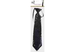 > Voir la description complèteCravate noire à sequins avec élastique pour un enfilage facile, légère et confortable. Idéale pour soirées costumées, anniversaires, carnavals ou fêtes à thème disco, bling-bling ou glamour, elle apporte une touche brillante et ludique à votre tenue. Accessoire parfait pour compléter un look élégant et festif pour adultes.