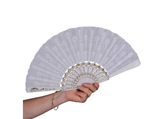 > Voir la description complèteCet éventail blanc apporte une touche raffinée à votre costume ou à votre mise en scène. Léger et facile à manier, il convient pour une soirée cabaret, un thème espagnol ou un événement déguisé. Idéal aussi en accessoire photo pour créer une ambiance travaillée.