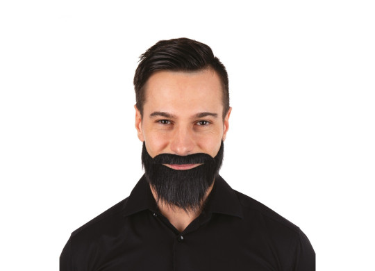 Set moustache et barbe noire, accessoire amusant pour compléter un déguisement ou un look rétro/humoristique lors d’un carnaval ou d’une soirée à thème.