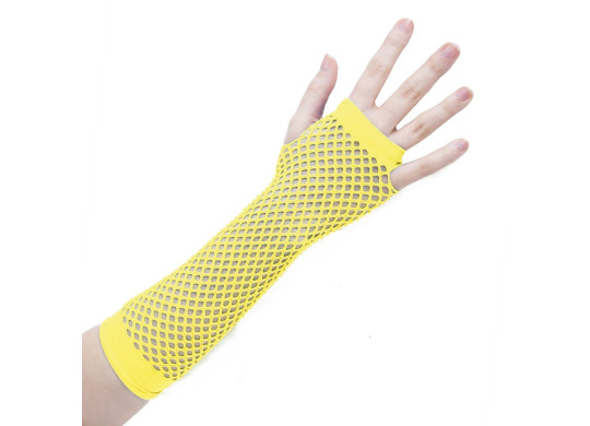 Mitaines résille jaune fluo, accessoire flashy et fun pour compléter un déguisement ou un look festif lors d’une soirée à thème ou carnaval.