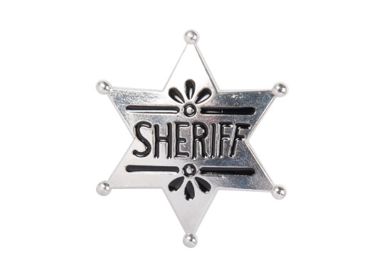 Étoile de shérif en métal, accessoire parfait pour compléter un déguisement de cowboy ou cowgirl lors d’un carnaval, fête western ou soirée à thème.