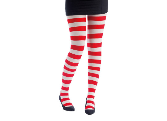 Collant rayé blanc et rouge, accessoire ludique et coloré pour compléter un déguisement ou une tenue festive lors d’un carnaval ou d’une fête déguisée.
