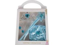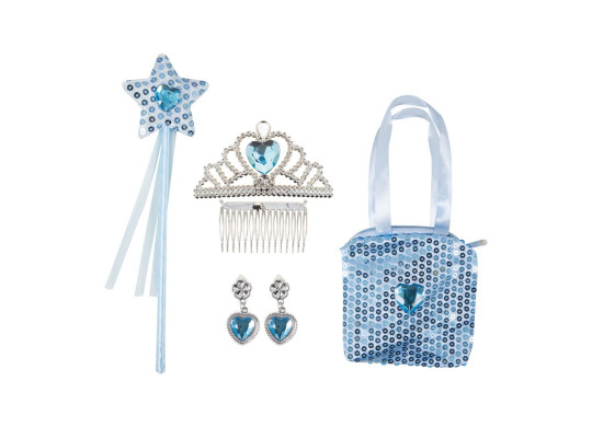 Coffret accessoires de princesse bleu, parfait pour compléter un déguisement et créer un look féerique lors d’un anniversaire ou d’une fête à thème.