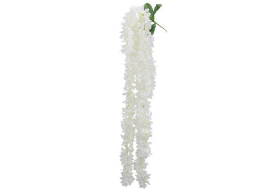 Descente de 5 branches de glycine blanche, longueur 110 cm, idéale pour une décoration florale élégante et aérienne.