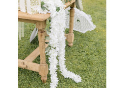 > Voir la description complèteCette descente composée de 5 branches de glycine blanche mesure 110 cm et apporte une touche romantique et raffinée à votre décoration. Parfaite pour habiller une arche de cérémonie, un mur, un plafond, une table d’honneur ou un fond photo, elle crée un effet cascade naturel et élégant. Idéale pour un mariage, un baptême, une baby shower ou tout événement au style chic et délicat. Facile à suspendre et à associer avec d’autres éléments floraux ou feuillages.