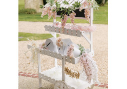 > Voir la description complèteCette branche de glycine tombante rose de 110 cm apporte un effet cascade naturel et raffiné à vos décorations. Parfaite pour habiller une arche, une barre décorative, un mur, un plafond ou un centre de table en hauteur, elle crée une ambiance romantique et chic. Idéale pour un mariage, un baptême, un anniversaire ou toute réception élégante, elle peut être associée à d’autres fleurs ou feuillages pour un rendu harmonieux et volumineux.