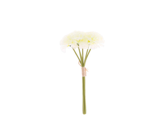 Bouquet de 6 œillets blancs, hauteur 32 cm, parfait pour apporter élégance et fraîcheur à vos décorations.