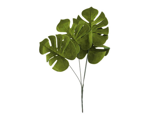 Branche de 4 feuilles de Monstera effet velours, longueur 60 cm, parfaite pour une décoration moderne et naturelle.