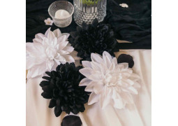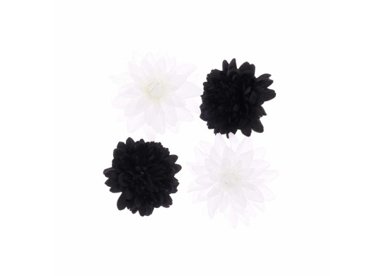 Lot de 4 têtes de dahlia noir et blanc, diamètre 15 cm, parfaites pour des compositions florales élégantes et contrastées.