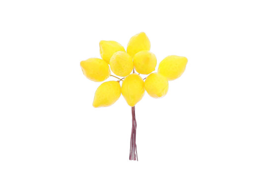 > Voir la description complèteCe petit bouquet de 11 cm regroupe 9 citrons jaunes éclatants, idéal pour un centre de table, un vase ou une composition décorative. Il apporte couleur et fraîcheur à vos décorations pour un mariage, un anniversaire, un baptême ou toute ambiance familiale et conviviale.