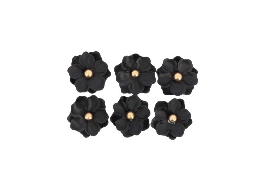 Lot de 6 magnolias noirs et or, diamètre 5 cm, parfaits pour apporter élégance et raffinement à vos décorations.