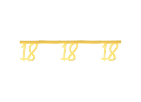 Guirlande âge métal or, 2,5 m avec éléments 20 x 18 cm, disponible de 18 à 80 ans, idéale pour décorer un anniversaire.