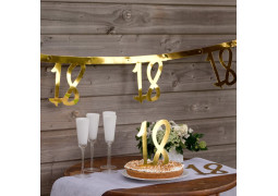 > Voir la description complèteCette guirlande âge en métal doré est disponible pour plusieurs âges de 18 à 80 ans. Avec une longueur de 2,5 m et des éléments de 20 x 18 cm, elle se place facilement sur un mur, au-dessus d’une table ou en fond de salle. Elle apporte une touche élégante et permet de mettre en valeur l’âge célébré lors de votre événement.