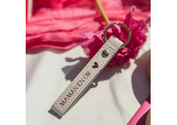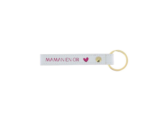 Porte-clés “Maman” en or et framboise, accessoire élégant et symbolique à offrir pour célébrer votre maman.