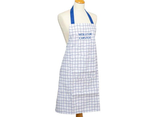 Tablier brodé “Meilleur Cuistot” couleur marine, accessoire pratique et original pour cuisiner avec style.