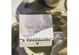 > Voir la description complèteCe bracelet délicat en perles vertes est parfait pour poser la question “Veux-tu être ma marraine ?” de manière originale et raffinée. Idéal comme cadeau souvenir, il permet à votre future marraine de garder ce moment précieux à son poignet, alliant émotion et élégance. Parfait pour un baptême ou toute occasion spéciale autour de ce rôle unique.