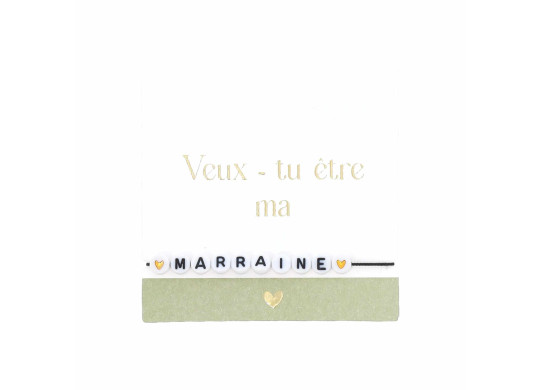 Bracelet perles “Veux-tu être ma marraine ?” couleur vert, accessoire symbolique et élégant pour faire votre demande spéciale.