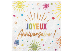 Sachet de 12 serviettes « Joyeux Anniversaire » Festicolor, 33 x 33 cm, disponibles en noir ou blanc, parfaites pour vos tables de fête.