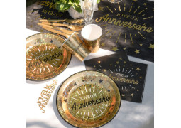 > Voir la description complèteCe chemin de table « Joyeux Anniversaire » étincelant de 30 cm x 5 m est idéal pour habiller votre table de fête. Disponible en argent, or ou rose gold, il s’adapte facilement à votre décoration. Parfait pour un anniversaire, il apporte une touche élégante et festive à votre table ou buffet.