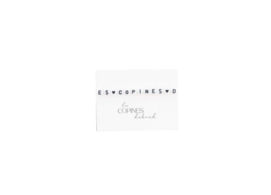 Bracelet “Les Copines d’Abord” avec perles blanches et noires, parfait pour célébrer l’amitié lors d’un enterrement de vie de jeune fille ou d’une fête entre amies.