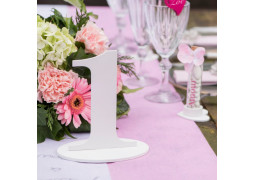 Marque-table chiffre en bois sur socle 16 cm, disponible de 0 à 9, coloris or ou blanc, idéal pour organiser vos tables.