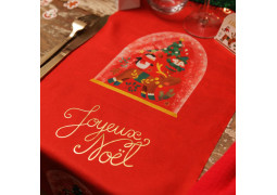 > Voir la description complèteHabillez vos tables de fête avec ce chemin de table en tissu rouge décoré de l’inscription "Joyeux Noël".