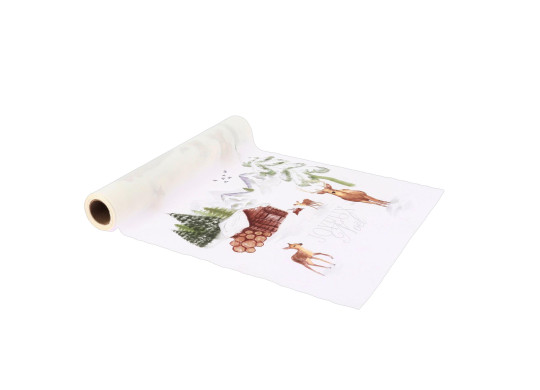 Chemin de table tissu blanc "Joyeux Noël" Neige éternelle 28CM X 3M