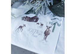 > Voir la description complèteHabillez vos tables de fête avec ce chemin de table en tissu blanc décoré de l’inscription "Joyeux Noël".