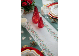 > Voir la description complèteCe chemin de table en popeline, décoré de houx et d’étoiles, apporte une touche traditionnelle et festive à vos repas de fin d’année.
