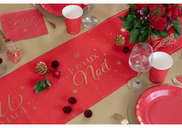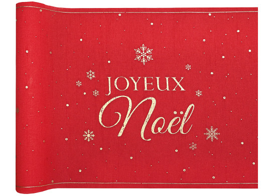 Chemin de table rouge "Joyeux Noël" Flocon d'or 28CM X 3M
