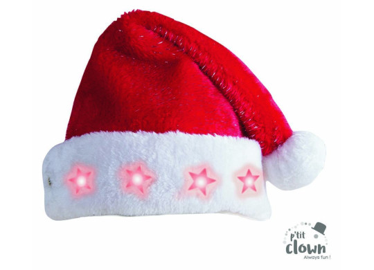 Bonnet Père Noël peluche adulte étoiles lumineuses