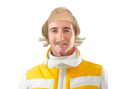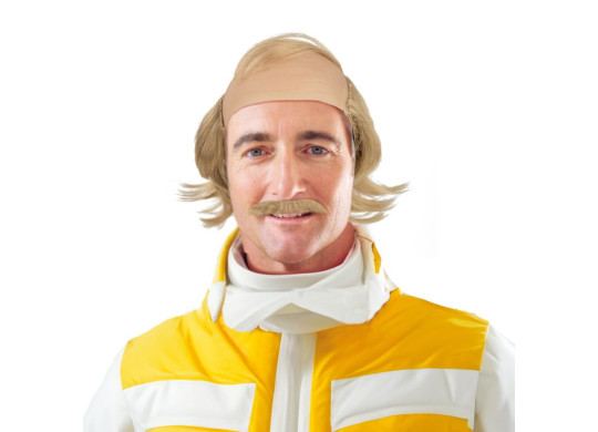 Perruque style Jean-Claude D, idéale pour compléter un déguisement humoristique ou une tenue décalée.