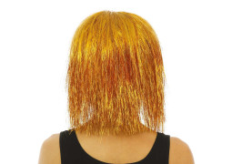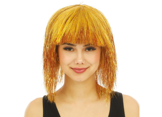 Perruque disco luxe or, idéale pour compléter une tenue de fête ou un déguisement à thème.